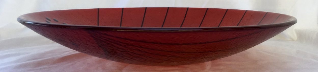 I make 16″ bowls which are slumped into a ball surface mold (shop.bullseyeglass.com/ball-surface-17-in-432-mm-slumping-mold.html). Ball surface molds are easy to use because the curve is the same throughout the mold, so you don’t have to worry about positioning the glass precisely for the slump. However, it does mean that the bottom is not flat, which led…